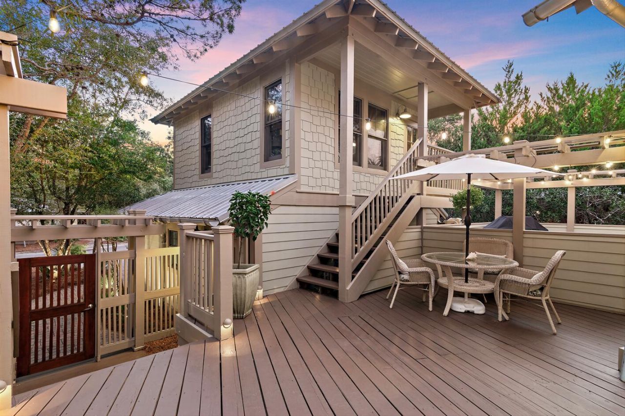 Charming Coastal Retreat in Exclusive Summer Ridge:Welcome to your dream seaside sanctuary in the serene, gated enclave of Summer Ridge--just a half-mile from the beach and a short-term rental restricted neighborhood. This beautifully renovated home blends luxury and privacy, perfect for a primary or secondary resident and for those seeking the ultimate coastal lifestyle. Multiple outdoor spaces are bathed in oaks situated in a peaceful fully fenced yard. Enter through a gated outdoor enclave with multiple decks and a carriage space above the garage. Surrounded by lush greenery, the setting evokes a sense of seclusion offering a private, tranquil retreat. Offering an outdoor shower ideal for an apres beach outing.As you pass through the elegant french doors discover a sunlit interior, complete with vaulted wood-beamed ceilings and expansive windows. Newly refinished hardwood floors extend throughout the open-concept layout, with the great room serving as a cozy centerpiece featuring a stunning fireplace adorned with Quartz Torino Gold. The modern kitchen is a culinary dream, equipped with Stainless Steel GE Café luxury appliances, including a six-burner gas stovetop. With Quartz Torino Gold countertops and a versatile breakfast bar, perfect for entertaining. Enjoy dining in a beautiful dedicated space that invites warmth and camaraderie.Conveniently located on the main level, the primary suite offers a private outdoor sitting area and an ensuite bath that boasts a sleek soaking tub, elegant glass shower, white subway tiles, and chic marble penny tile flooring. The first level also features a spacious laundry suite and additional storage, plus a conveniently located powder room near the outdoor area. Leading to additional outdoor entertaining or media space enclosed in a screened in porch overlooking the deciduous scrub oaks and natural fence. Ascend the floating stairs to reveal a thoughtfully designed split floor plan, featuring two generous guest bedrooms. One guest room boasts its own private balcony, while the two rooms share a stylish Jack & Jill bath, adorned with moon rock double vanities and custom niches in the seamlessly tiled shower.Perfectly Located for Coastal Living: This home is just 0.70 miles from the pristine beaches and the shimmering Gulf of Mexico. Enjoy easy access to shopping, dining, and entertainment at Gulf Place, which features a vibrant farmer's market and a bustling amphitheater hosting summer concerts and events. The Santa Rosa Beach and Golf Club is a mere 10-minute golf cart ride away.