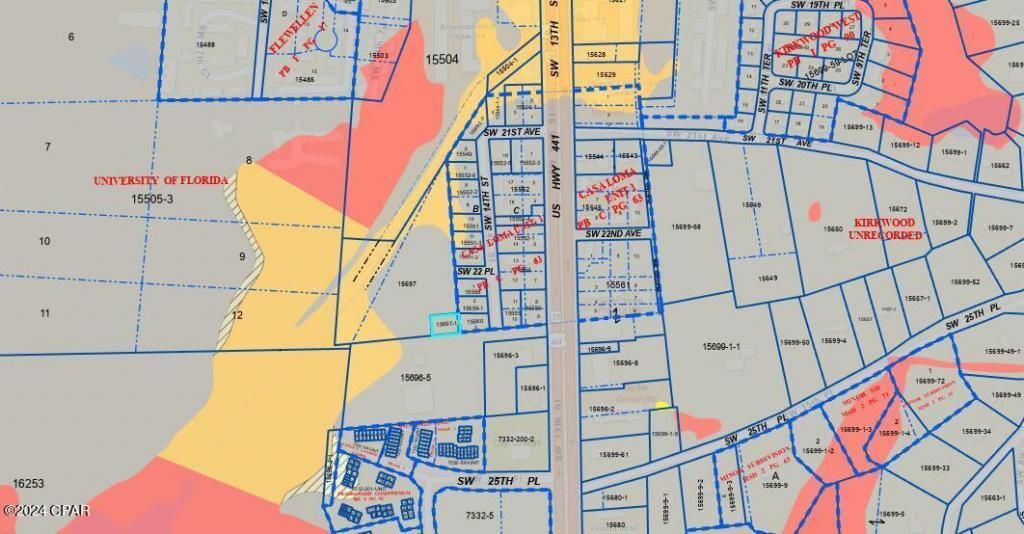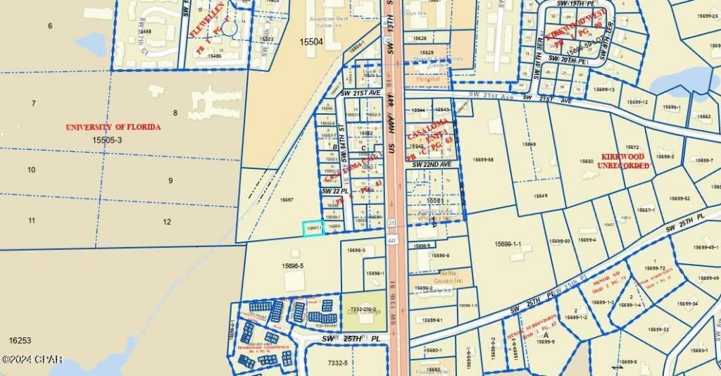 The parcel is located within the U8: Urban 8 zoning district with endless uses. The list of uses is available. The property has been surveyed and there is a deeded easement to this property. The property is still wooded and undeveloped. It's ready to be transformed into what fits your needs. Not many parcels of this size in the area are available for sale. Close drive to US Hwy 441 / SW 13th St. Property adjoins Lake Shore Towers and is right down the road from Shands Hospital.