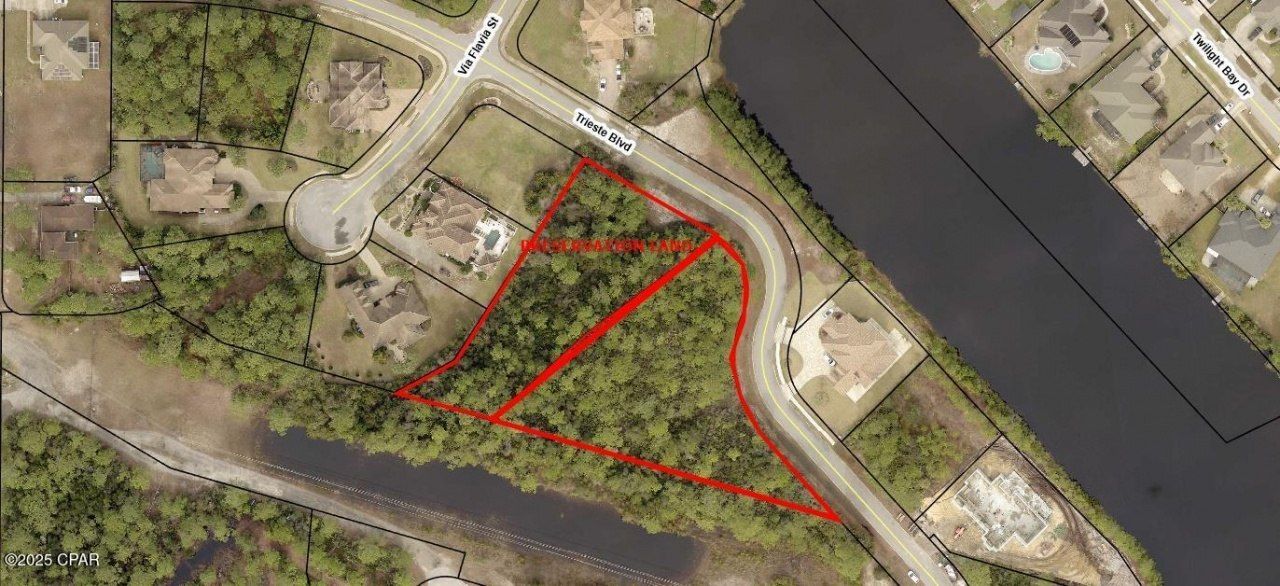 Almost 2 full acres on Panama City Beach. Welcome to Trieste, one of the most beautiful GATED communities in all of Bay County. Located on the north side of Colony Club and next to LEGACY Golf Course, Trieste offers ONLY Mediterranean styled homes, paver driveways, and lots of privacy. Here you will be close to PIER PARK and TOPGOLF, and just 1 minute to Gayle's Trails for walking and biking. This 1. 11 acre lot comes with an additional . 86 acre preservation area, for a total area of almost 2 acres. Build your dream home and have your own small nature reserve to watch the birds, deer, and other wildlife that abounds here. Lot is level, sits in flood zone X, and is ready for a new home. Call your Realtor today and start living the dream. All measurements are approx.