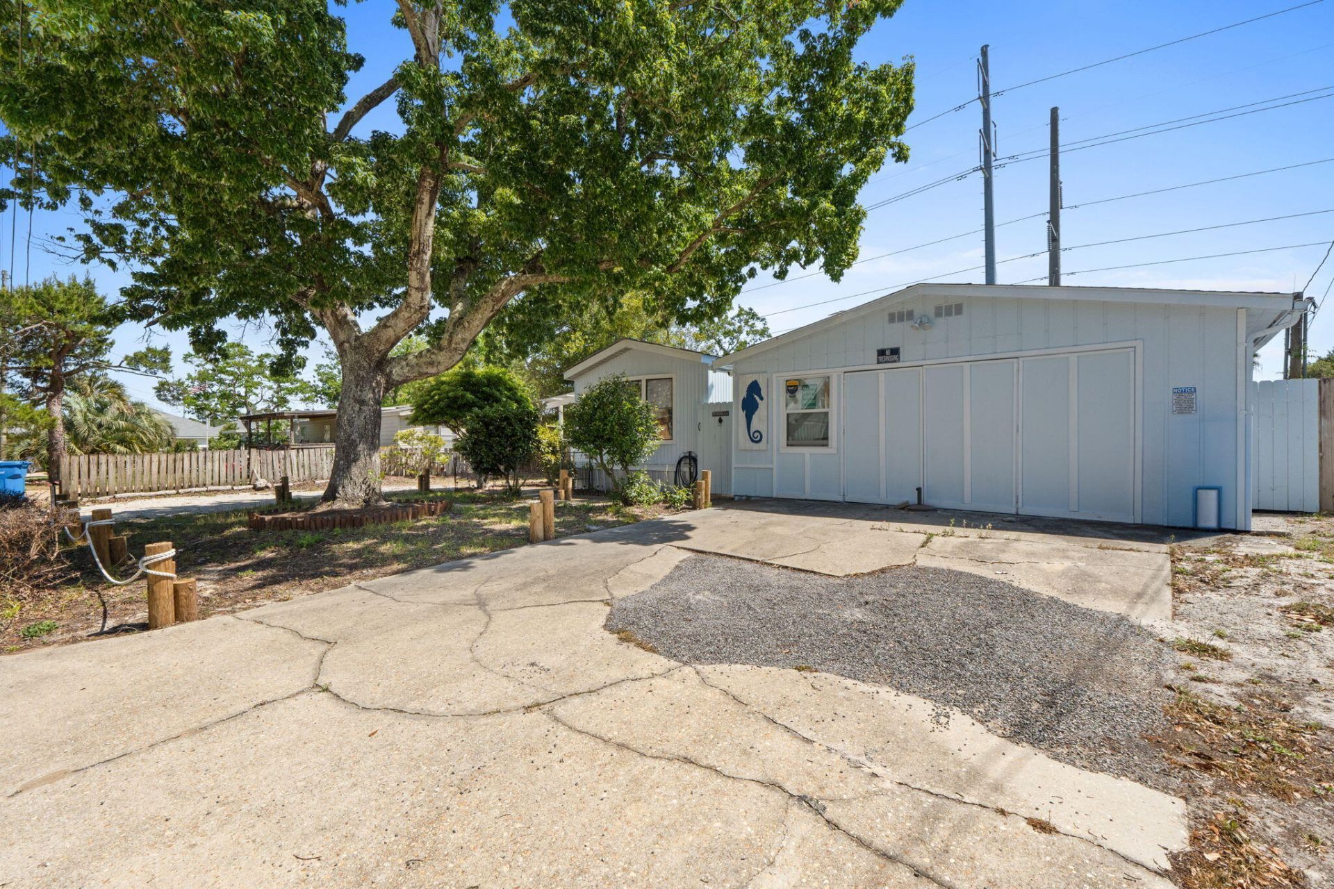 Welcome home! This home offers comfort and great outdoor living all less than 10 minutes from Pier Park and the beach! Whether you're looking for a primary residence, beach getaway, or investment opportunity, this property checks all the boxes! The home is already registered as real property, and includes every single thing you see - vacation rental ready! Roof and water heater replaced in 2022 and inside, you'll find stainless steel appliances and LVP flooring. Step out back and the property really shines! Enjoy a fully fenced yard, a spacious back deck, and an above-ground saltwater pool - perfect for relaxing or entertaining. The outdoor shower and bar area make it easy to rinse off and unwind. A detached garage and storage shed provide plenty of room for tools, toys, or hobby space