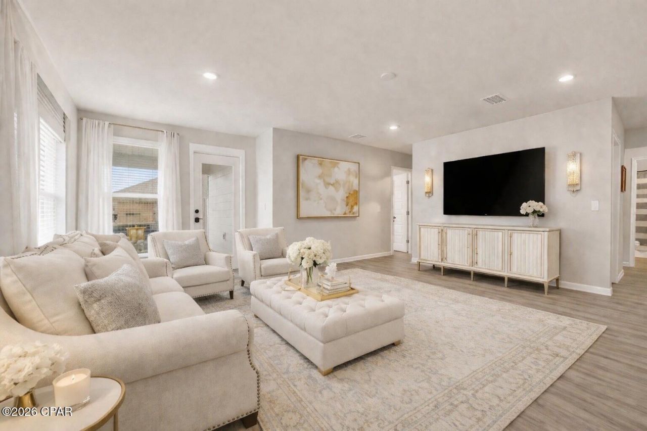 This beautifully maintained home stands apart from the typical new builds in the neighborhood thanks to its full Hardie Board exterior, a premium upgrade that adds exceptional durability and long-term peace of mind. Inside, the home features a series of thoughtful upgrades designed to enhance both style and convenience. A recirculating heat pump provides near-instant hot water, while the kitchen includes a filtered water spout and a built-in hidden trash system. The sellers also upgraded the door knobs, kitchen hardware, and sinks to create a more polished, elevated feel throughout the home. Smart-home features include smart switches, a smart garage door, Nest cameras, an Aqara smart lock and video doorbell (Apple Home compatible), and a WiFi-controlled, four-zone irrigation system. The home also includes custom closet built-ins and organizers, adding function and storage to multiple rooms. Luxury vinyl plank flooring was added in the primary suite for both style and durability. Additional exterior highlights include Govee roofline lighting, gutters, and a termite bait system for added protection. The fully fenced backyard is ready for weekend enjoyment and features a playground with plenty of space to personalize. Located in the highly desirable Park Place community, residents enjoy sidewalk-lined streets, a neighborhood pool, playground, and BBQ area, creating a warm and family-friendly environment. Conveniently situated near shopping, schools, parks, and Tyndall AFB, this upgraded home combines comfort, efficiency, and community living in an ideal location. Get a 5. 99% interest rate with preferred lender.