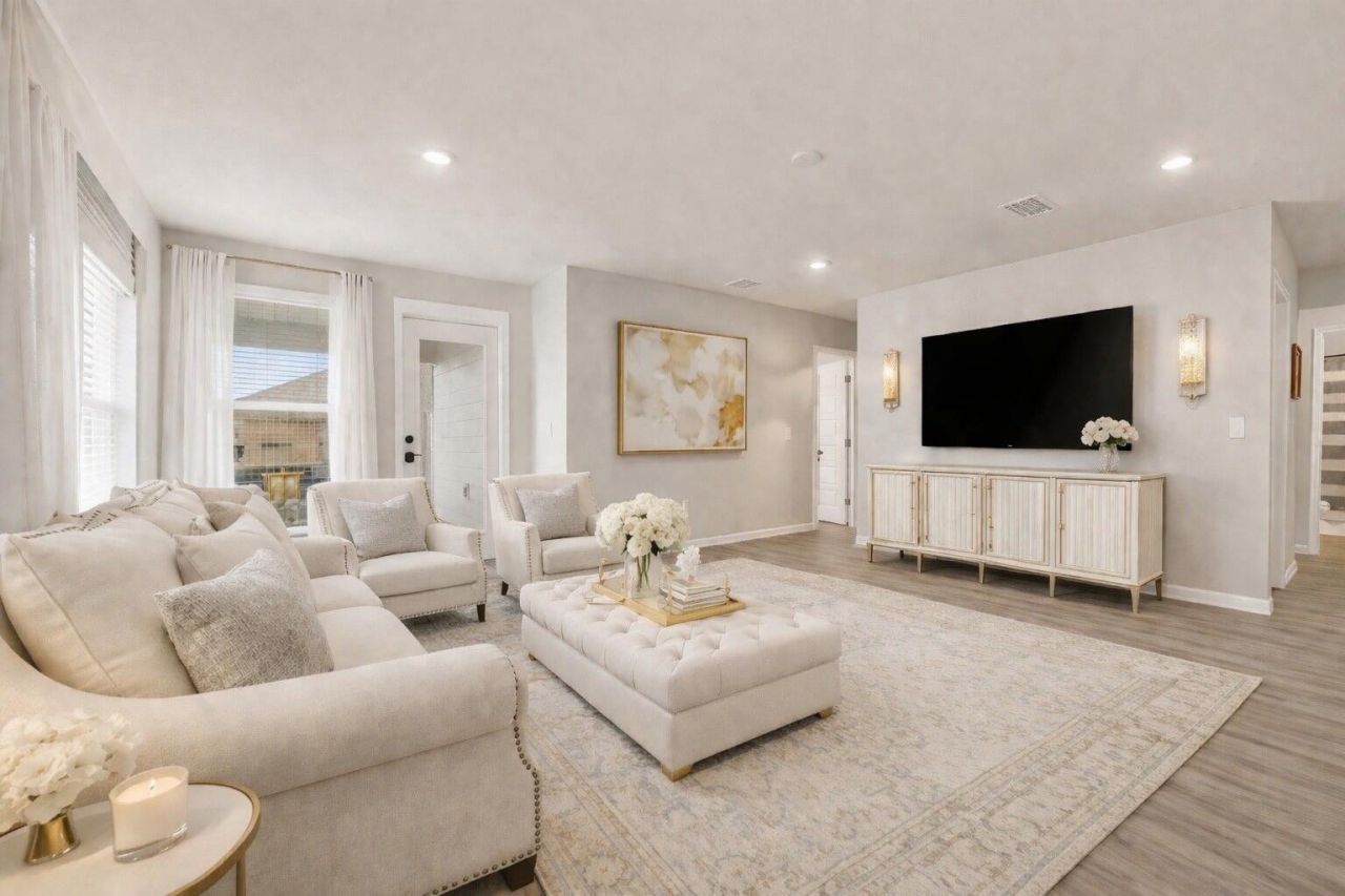 This 5-bedroom, 3-bath Lakeside floor plan was built in 2024 and still feels like new. Priced below recent sales of the same floor plan, it presents an incredible opportunity for buyers. Park Place will not be building any more of this 5-bedroom Lakeside plan.The home offers durable Hardie Board siding, unlike many of the newer homes in the neighborhood that feature vinyl siding, along with a long list of upgrades throughout.Inside, the layout offers both space and functionality. Two bedrooms and a full bath are located at the front of the home, with two additional bedrooms situated off the center hallway. The primary suite is privately tucked at the rear and features luxury vinyl plank flooring to match the rest of the home, double vanities, a large tiled shower, and an oversized custom closet.The kitchen is finished with beautiful white shaker cabinets, quartz countertops, and newer stainless steel appliances. Throughout the home, all bedrooms have upgraded lighting, replacing the standard builder-grade fixtures for a more polished feel.Residents of Park Place enjoy sidewalk-lined streets, a community pool, playground, and BBQ area, creating a welcoming neighborhood atmosphere.