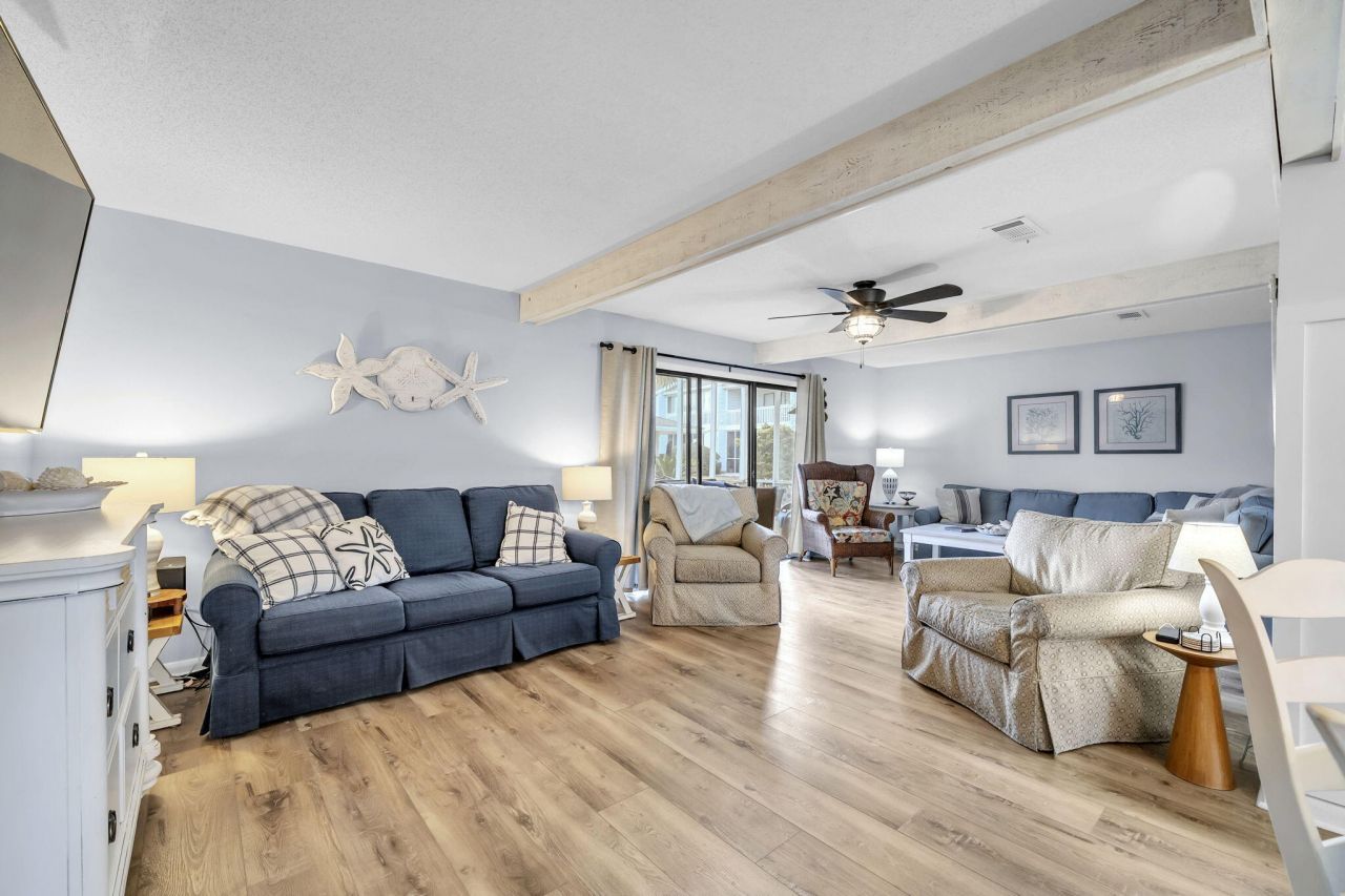 Welcome to Misty Cove, a rare opportunity to own one of only two stand-alone townhomes in this charming community. This three-bedroom, three-bath home features a long list of updates and improvements totaling over $135,000. The property offers the perfect blend of privacy, comfort, and investment potential. Step inside to find luxury vinyl plank flooring throughout, complemented by fresh paint, and updated light fixtures that create a bright, updated feel in every room. The ground floor features a beautifully renovated full bathroom and a well-appointed and updated kitchen with quartz countertops and a convenient breakfast bar, ideal for casual dining or entertaining guests. Just beyond the living area, a screened-in back porch provides a relaxing outdoor retreat and offers direct access to the community pool, making it especially appealing for short-term rental guests and owners alike.Upstairs, you'll find a thoughtfully designed layout that includes a guest bedroom and a bunk room sharing a recently renovated hall bathroom. The spacious primary suite offers a peaceful escape with vaulted ceilings, a walk-in closet, and a private covered balcony. The en-suite bath includes a separate shower and powder area for added comfort and functionality.Additional highlights include three assigned parking spaces -- a rare feature in the community. Whether you're looking for a primary residence, second home, or turnkey investment property, this distinctive Misty Cove townhome stands out for its privacy, updates, and unbeatable access to the pool.In addition to its incredible location, 0.3 miles to the beach, and thoughtful updates, the property places you right in the heart of Miramar Beach's vibrant food and shopping scene such as Outcast Seafood, Pompano Joe's, Fat Clemenza's, Aegean Greek Restaurant. Take advantage of the exceptional shopping nearby, including Silver Sands Premium Outlets and Destin Commons.
