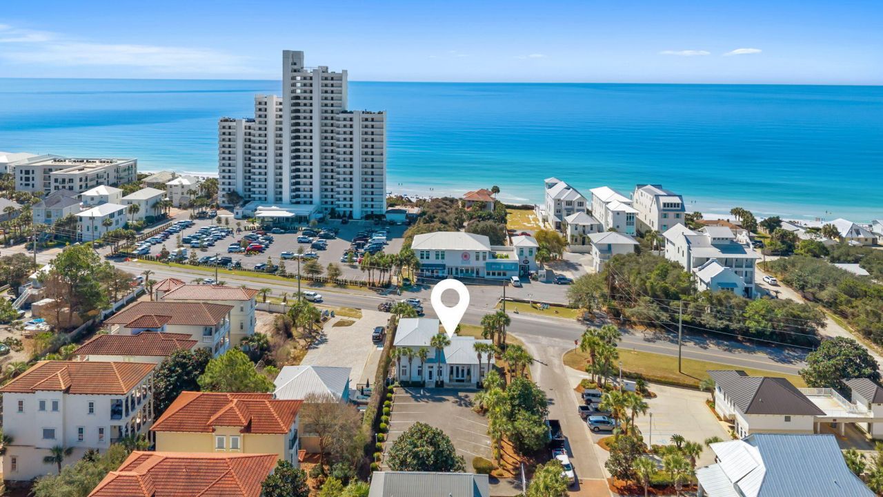 Prime 30A investment opportunity offering commercial office space with eight offices plus a private Gulf-view apartment ideal for owner occupancy or short-term rental income. Located in the heart of Seagrove Beach along scenic 30A, this professional office building, features eight private offices and a spacious conference room. Total office space of approximately 2110 sq. ft. Above the office space is a beautifully appointed 2-bedroom, 1.5-bath apartment, approximately 674 sq. ft, with a private entrance and balcony offering stunning Gulf views. Positioned directly across from the beach, this unique mixed-use property also includes 14 parking spaces--an exceptional amenity in this highly desirable coastal location.