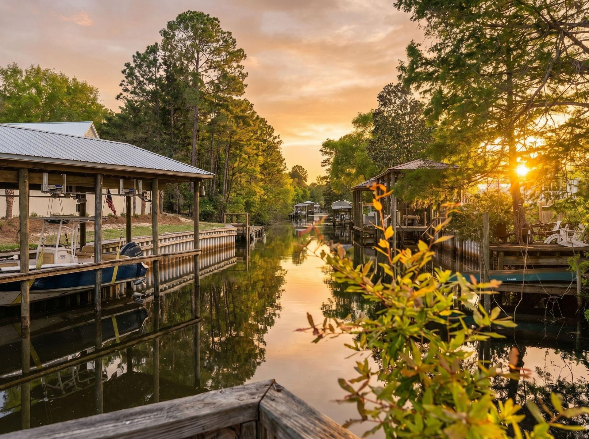 Wake up to canal views and cast off from your own backyard. Tucked into one of Point Washington's most beloved neighborhoods, 578 W Point Washington Road delivers the waterfront lifestyle 30A buyers dream about - private dock with boat lift (power and water already run to the lift), established seawall, and a waterfront fire pit made for sunset gatherings.Built in 2019 with 3,118 heated square feet of coastal-durable Hardie board construction and crowned with a premium standing seam metal roof, this two-story, 6-bedroom, 4.5-bath residence combines everyday durability with the warmth of a true gathering home. The main house offers 5 bedrooms and 3.5 baths, while a detached carriage house adds a private 1-bed, 1-bath retreat - ideal for guests, multi-generational living, or income potential.Inside, an open-concept floor plan flows effortlessly from room to room. The kitchen is anchored by a 36 Thor gas range and finished with semi-custom cabinetry, quartz countertops, under-cabinet lighting, and a seamless layout built for entertaining. A tankless gas water heater and full suite of gas appliances deliver everyday efficiency, while a gas fireplace and high-end light fixtures add quiet luxury throughout. LVP flooring runs through the main living areas; secondary bedrooms are carpeted for comfort.The first-floor primary suite features a walk-in closet with custom shelving and a spacious bath finished with quartzite countertops, and a generously sized bonus/flex room on the main level works beautifully as a home office, playroom, media space, or additional sleeping quarters. Upstairs, three bedrooms offer comfortable separation for family and guests - one with a private en-suite bath, and two more sharing a full hall bath. Thoughtful details - marble-topped powder bath, a brick-paver mudroom with built-in cubbies, gas lanterns on the front porch, and expanded eave storage in multiple bedrooms - set this home apart.Outside, enjoy a covered porte-cochère plus garage, covered back porch, outdoor shower, and a refreshed front exterior. Exceptional storage, premium construction, and unbeatable canal access make this a rare find in Point Washington.Launch the boat, light the fire pit, and settle in. This one lives the way the coast was meant to.