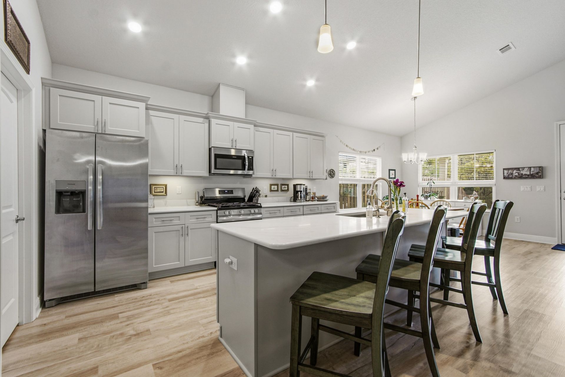 Welcome to The Bluffs at Lafayette--where comfort, style, and convenience come together in one of Freeport's most desirable communities. This is a rare opportunity to own a nearly new home--only better--with thoughtful upgrades already in place, including added gas lines supporting a gas fireplace, tankless water heater, and gas stove--enhancing both efficiency and comfort. This open-concept 3 bed, 2 bath home features durable LVP flooring throughout and a thoughtfully designed layout ideal for both everyday living and entertaining. The spacious living area is highlighted by soaring ceilings, while the primary suite offers a tray ceiling and generous proportions, including a large walk-in closet and a well-appointed ensuite with a separate garden tub and shower, quartz countertops, and undermount sinks. Additional interior features include 9'+ ceiling heights, 8' entry doors, and lever-handled hardware throughout. Step outside to enjoy the large covered rear patio and fully sodded yard with an irrigation system powered by a private well and pump. Enjoy added privacy as this home backs up to a natural preserve--no rear neighbors and no rooftops behind you.The Bluffs at Lafayette continues to grow, with a brand-new pool and clubhouse expected to open soon, adding even more appeal to this already sought-after community.Don't miss your chance to own a nearly new home with upgrades already done for you in this up-and-coming neighborhood.