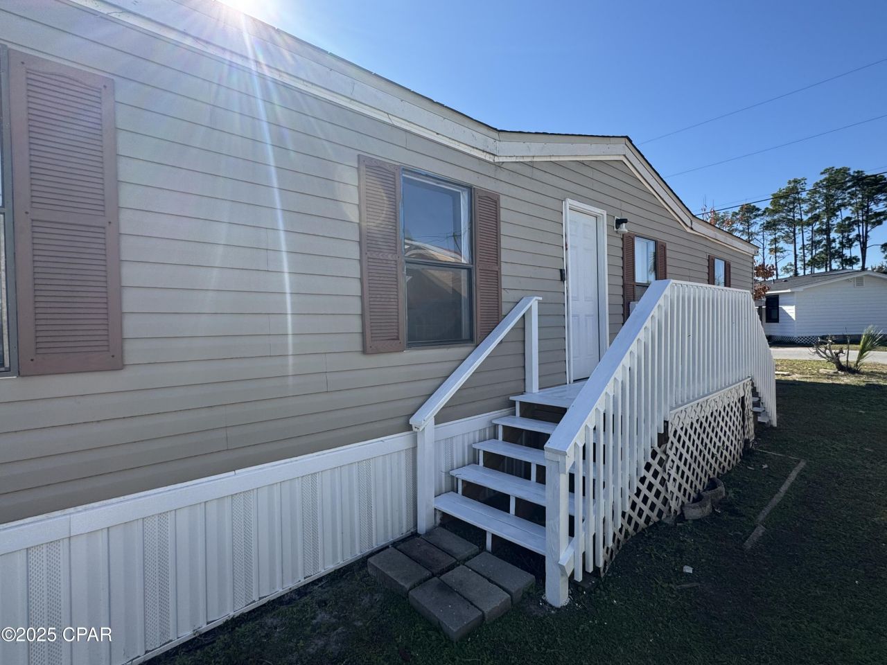 ** Seller Motivated** Welcome to this spacious 3-bedroom, 2-bathroom double-wide home set on a desirable double lot in Bayside Park, just steps from a full service marina that offers launch services, plus RV and boat storage. Walk into an open living and dining room layout filled with natural light. The updated kitchen features brand-new cabinets, refrigerator, and dishwasher, along with wood look tile flooring and an island that overlooks the living room and sitting area--perfect for everyday living and entertaining. The split floorplan offers great privacy. The primary bedroom includes double windows, a walk-in closet, and an en-suite bathroom with a new vanity and a relaxing jacuzzi tub/shower combo. On the opposite side of the home, you'll find two additional bedrooms with walk-in closets and a full bathroom with a tub/shower combo and a new vanity. Recent upgrades include brand-new central AC, a new water heater, new skirting, and LVP flooring throughout the main living areas. Just past the kitchen is a dedicated laundry room, and out the back door you'll enjoy an enclosed Florida room with windows and a glass door that faces the marina--an ideal spot to relax and take in the coastal breeze. This home is move-in ready and simply waiting for the new owner to add the finishing touches. Located in Bayside Park, you'll be minutes from Bay County Skate Park, Publix Sports Park, Duplin Winery, Gulf Coast State College, Pirates Voyage Show and all the shopping and dining along Front Beach Road. Fireplace conveys ''as-is''. Functionality and condition are unknown. This home will make for a make for a great primary home, but could be utilized as wonderful vacation getaway or short & long-term rental investment property. All measurements and lot dimensions are estimates only-Buyer or Buyer's Agent to verify if deemed important.