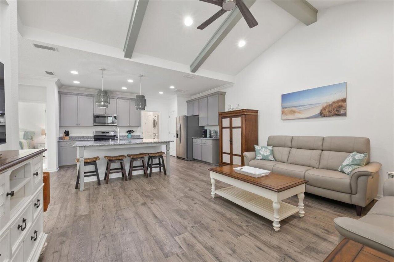 Ready to Live the Dream in Paradise? This is it! Welcome to this beautiful Camellia Cottage at 8556 Dreams Float Ct located in the fantastic 55+ community of Latitude Margaritaville Watersound, This is not your ordinary cottage there are so many upgrades! As you step inside this piece of paradise you will discover a beautifully appointed haven, soft neutral colors, an extended kitchen island with gorgeous countertops and upgraded cabinetry that is every chef's delight! Relax on your screened-in porch, a perfect spot for morning coffee or sunset cocktails. Hop in your golf cart and cruise around the neighborhood. The only thing missing is You! Property is currently furnished but can be sold unfurnished or partially furnished all is negotiable!